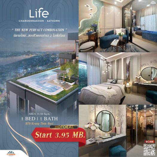 ขาย 1 ห้องนอน 1 ห้องน้ำคอนโด Life Charoennakhon-Sathorn ห้องไซส์ 31.5 ตร.ม วิวแม่น้ำสวยๆ