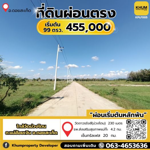 ที่ดินผ่อนตรงอ.ดอยสะเก็ดริ่มต้น 99 ตารางวาง ราคา 455,000 บาท