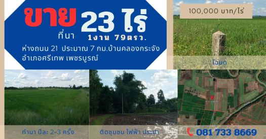 ขายที่นา 23ไร่ 23ไร่ 1งาน 79ตรว บ้านม่วงชุม คลองกระจัง ศรีเทพ เพชรบูรณ์