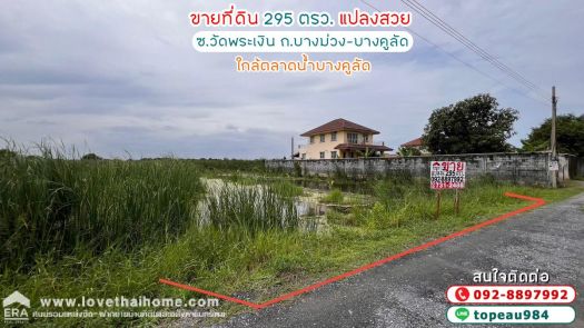 ขายที่ดิน ซอยวัดพระเงิน ถนนบางม่วง-บางคูลัด พื้นที่ 295 ตรว. แปลงสวย เหมาะลงทุน ใกล้ตลาดน้ำบางคูลัด