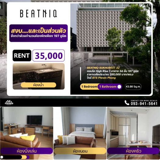 เช่าBeatniq Sukhumvit 32 ห้องตกแต่งออกแบบมาได้ดี ง่ายต่อการใช้ชีวิต
