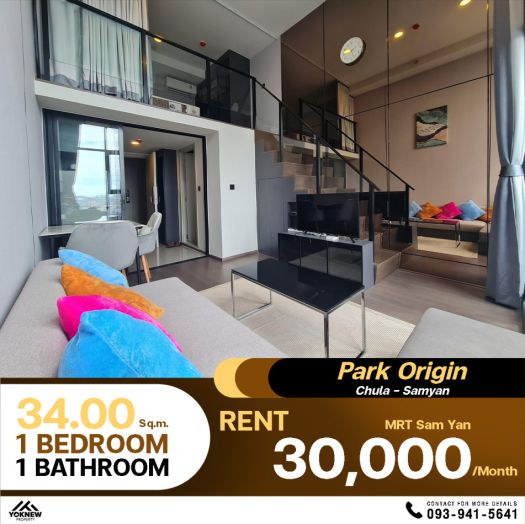 สำหรับเช่าคอนโด Park Origin Chula - Samyarn ห้อง Duplex เฟอร์นิเจอร์ให้มาพร้อมเข้าอยู่ได้เลย เช่าราคา 30,000 บาท*