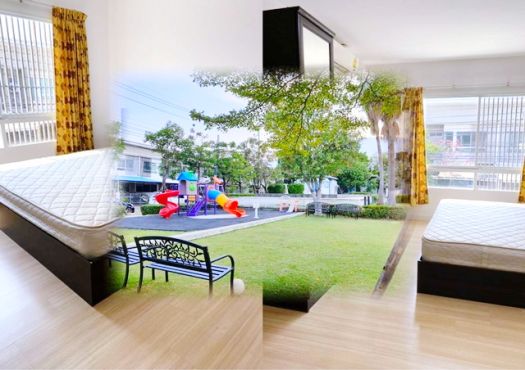 เฟอร์นิเจอร์ : เตียงพร้อมที่นอน ตู้เสื้อผ้า ชุดโต๊ะกินข้าว มีซิงค์ ตู้บิ้วอิน