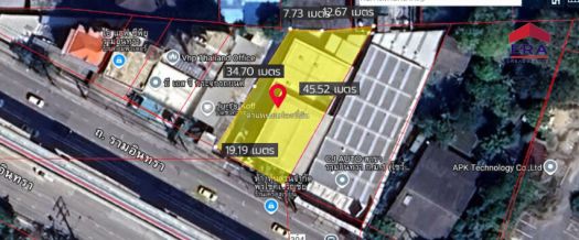 ที่ดินพร้อมสิ่งปลูกสร้าง (สำนักงาน+โกดัง) ทำเลศักยภาพ ติดถนนรามอินทรา อยู่ฝั่งตรงข้ามสนามกอล์ฟ กองทัพบก