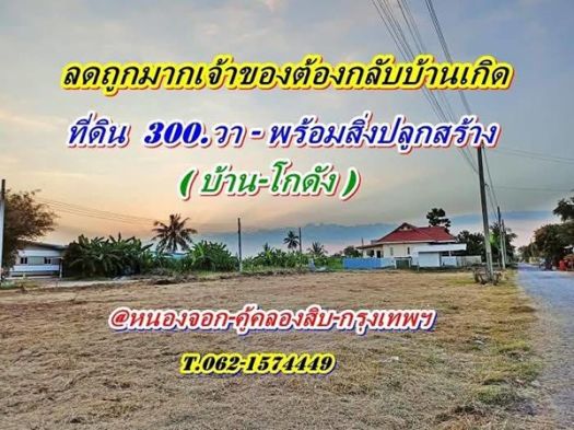 ด่วนลดราคาถูกมากเจ้าของต้องย้ายกลับบ้านเกิดที่ดินพร้อมสิ่งปลูกสร้างที่หนองจอก T.062-1574449