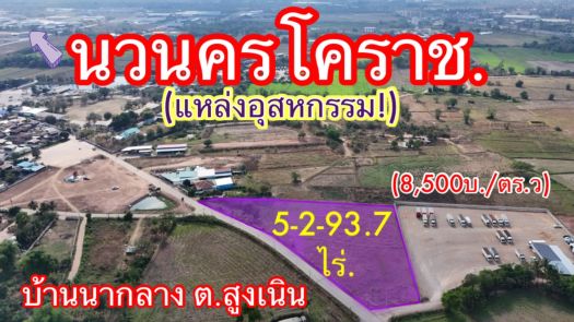 #ขายที่ดินหลังนวนครสูงเนินโคราช (ใกล้วงแหวนฯ) 5-2-93.7 ไร่. (8,500บ. /ตร.ว.) ✅ติดบริษัทเครือพูลทรัพย์ ต.นากลาง อ.สูงเนิน จ.นครราชสีมา