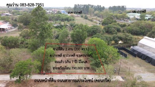 ขายที่ดิน 200 ตารางวา มีโฉนด ถมแล้ว ติดถนนคอนกรีต หน้า รพ.ปากพลี ขาย 790,000 บาท