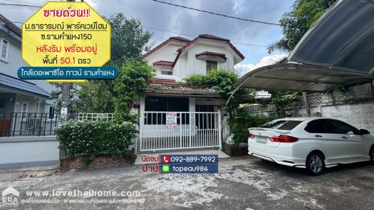 ขายบ้านเดี่ยว2ชั้นหมู่บ้านธารารมณ์ พาร์คเวย์โฮม ซอยรามคำแหง150 พื้นที่ 50.1 ตรว. ขาย 4.29 ล้านบาท หลังริมพร้อมอยู่ (ปรับราคาใหม่ ถูกที่สุดในโครงการนั้นแล้ว)