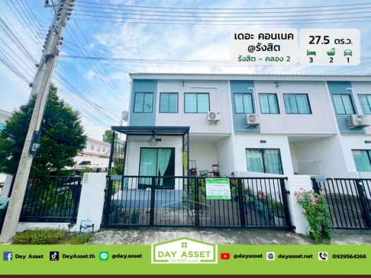 ขายทาวน์เฮาส์ 2 ชั้น หมู่บ้านเดอะ คอนเนค @ รังสิต-คลอง 2 :T he Connect @ Rangsit-Klong 2 เดินทางสะดวกสบาย สามารถเข้า-ออก ได้หลายเส้นทาง ล้อมรอบไปด้วยแหล่งอำนวยความสะดวก เนื้อที่ 27.5 ตร.ว. ขายเพียง 2,750,000 ล้านบาท