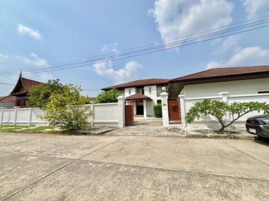 ตัวบ้านล้อมรอบด้วยสวน พร้อมเรือนไทยเก่าตั้งอยู่ด้านข้าง พื้นที่สวนกว้างเพียงพอสำหรับสร้างสระว่ายน้ำเพิ่มเติมได้