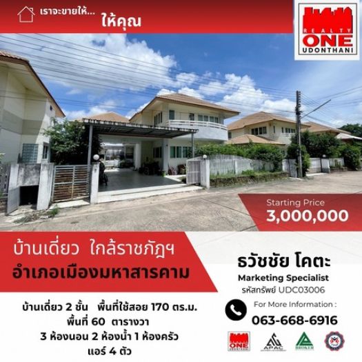 บ้านเดี่ยว 2 ชั้น โครงการ ใกล้ มหาวิทลัยราชภัฎ มหาสารคาม