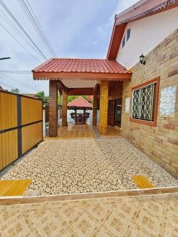 Thanyaburi LamLukKa Khlong8 WatDonYai 200m. Single-story house for rent newly renovated 60 sq.wa. 240 sq.m. 9,499 B-M. Saharat Bamrung School 2.7 km. Beautiful luxurious and comfortable 3 bed 3 bath Chatchawan Market Khlong 7 4.4 km. Easy access to food and transportation. Thanyaburi Intersection Lam Luk Ka Road.