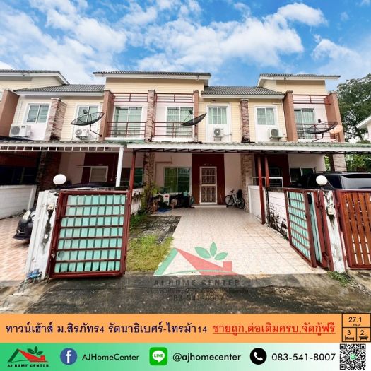 ขายทาวน์เฮ้าส์27.1ตรว. ม.สิรภัทร4 รัตนาธิเบศร์-ไทรม้า14 สภาพดี ต่อเติมครบ จัดกู้ฟรี