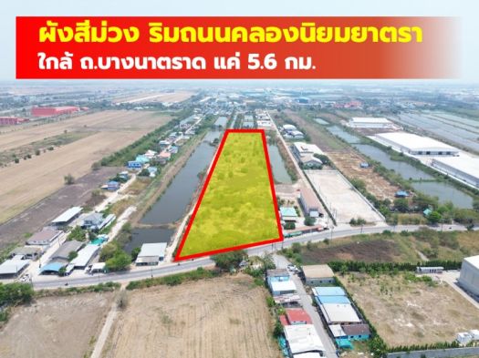 ขาย ที่ดิน ผังสีม่วง ริมถนนคลองนิยมยาตรา บางบ่อ 20 ไร่ ใกล้ถ.บางนา-ตราด แค่ 5.6 กม. CC