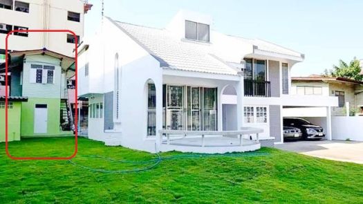 single house 2 mansions for rent near MRT LatPhrao 299m. Parking for 10 cars Ramintra 15-21 202sq.wa 602sqm. Central Ramintra 1.8km. Krirk University 2km. 44,998 B-M