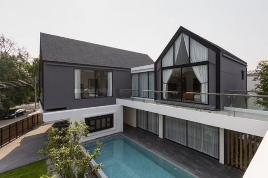 บ้านพูลวิลล่า 2 ชั้น #สไตล์โมเดิร์น มีพื้นที่สีเขียวรอนตัวบ้าน บรรยากาศร่มรื่น