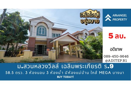 ขายขาดทุน! บ้านเดี่ยว เฉลิมพระเกียรติ ร.9 ซอย 28 ม.สวนหลวงวิลล์ 58.5 ตรว. 3 ห้องนอน 3 ห้องน้ำ มีห้องแม่บ้าน ใกล้ MEGA บางนา วงแหวนกาญจนาภิเษก