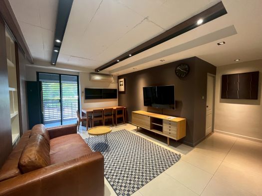ห้องขนาดกว้าง 57.9 ตร.ม. แบ่งพื้นที่เป็นสัดส่วน 2 ห้องนอน 2 ห้องน้ำ