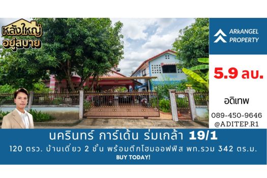 ขาย บ้านเดี่ยว 120 ตรว. หมู่บ้าน นครินทร์ การ์เด้น ร่มเกล้า 19/1 พร้อมอาคารสำนักงาน พื้นที่ใช้สอยรวม 342 ตร.ม. เหมาะทั้งในการเป็น Home Office และอยู่อาศัย