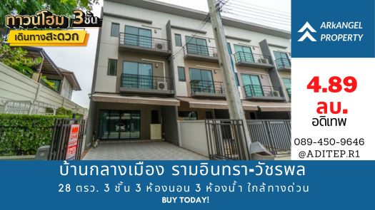 ขายทาวน์โฮม 3 ชั้น บ้านกลางเมือง รามอินทรา-วัชรพล 28 ตรว. 3 ห้องนอน 3 ห้องน้ำ ใกล้จุดขึ้นลงทางด่วน สุขาภิบาล 5