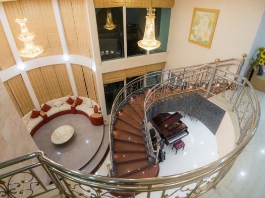 - 1 โถงรับแขกกลมสูง 16 ที่นั่ง พร้อมกระจกบานยาว 30 ชิ้น (กระจกบานพับเปิด-ปิด 12 ชิ้น) และผ้าม่านชักรอก และ แชนเดอเรียคริสตัล โคมไฟสูง 5 ตัว