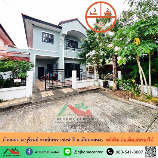 ขายบ้านแฝด42ตรว. หลังริม ม.บุรีรมย์ รามอินทรา-ซาฟารี ถ.เลียบคลอง2 สวยพร้อมอยู่