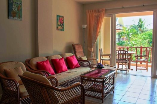 สวนเขตร้อนมีพื้นที่กว้างขวางสำหรับเด็ก ๆ ในการเล่นรอบ ๆ และชายหาดอยู่ใกล้บันไดหน้าประตู