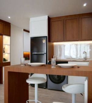 รีโนเวทใหม่ทั้งห้อง ดีไซน์เรียบหรูสไตล์โมเดิร์นอบอุ่น ใช้วัสดุคุณภาพ พื้นไม้ SPC ครัวบิ้วอินพร้อมเตาไฟฟ้าและเครื่องดูดควัน เฟอร์นิเจอร์และเครื่องใช้ไฟฟ้าครบชุด