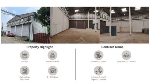 ให้เช่าโกดัง437ตร.ม.ย่านแจ้งวัฒนะหลักสี่ใกล้MRT ศูนย์ราชการ