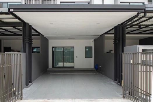 บริเวณพื้นที่จอดรถรองรับการติดตั้ง EV Charger พร้อมกล้องวงจรปิด หลังคาหน้าบ้าน หลังคาหลังบ้าน(SCG : Shinkolite)