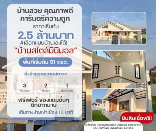 ราคาเริ่มต้นที่ 2.5 ล้าน เริ่มที่ 51 ตรว. #โซนหางดง #บ้านสร้างใหม่ ชั้นเดียว #สไตล์มินิมอล ราคาไม่แพง ตอบโจทย์ทุกไลฟ์สไตล์ เดินทางสะดวกสบาย #ใกล้กาดฝรั่ง เข้าเมืองเพียง 10-15 นาที