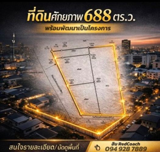 • เนื้อที่ 688 ตร.ว. รูปแปลงสี่เหลี่ยม ลงตัว ใช้ประโยชน์เต็มพื้นที่