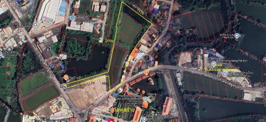 ขายที่ดินพื้นที่สีม่วง ติดถนนคู่สร้างประชาอุทิศ เนื้อที่ 10 ไร่ ราคาประเมินวาละ 35,000 ไร่ละ 14ล้าน