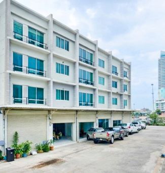 Behind EGAT headquarters. MRT BangPhlu 3km. 4-story commercial building for rent corner unit 3beds 4baths near community area and Bang Kruai Market 600 m. usable area 24 sq.wa. 340 sq.m.