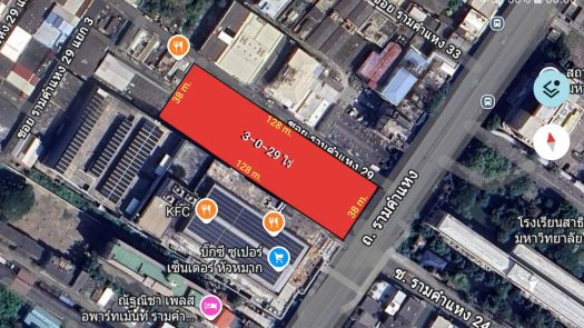 ขายที่ดินมีสิ่งปลูกสร้าง 3-0-29 ไร่ (ผังสีแดง) ติด ถ.รามคำแหง ห่างรถไฟฟ้าMRT สถานีรามคำแหง 400 เมตร เขตบางกะปิ กรุงเทพๆ