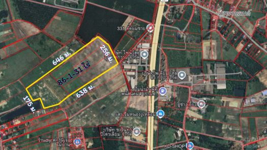 ขายที่ดินพนัสนิคม ชลบุรี 86-1-31ไร่ สีเหลือง ใกล้ถนน331แค่ 450 ม. เหมาะทำ โรงงาน โกดัง คลังสินค้า บ้านจัดสรร