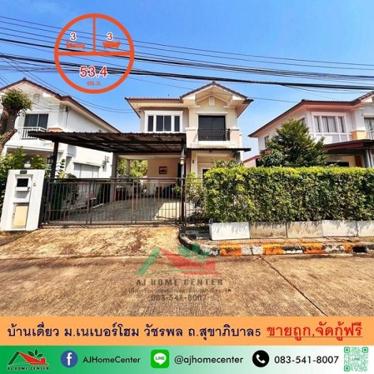 ขายถูก4.2ล้าน บ้านเดี่ยว53.4ตรว. ม.เนเบอร์โฮม วัชรพล ถ.สุขาภิบาล5 จัดกู้ฟรี