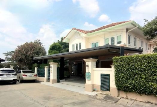 จุดเด่น พื้นที่กว้างบรรยากาศดีร่มรื่นสงบ สภาพบ้านเรียบร้อย ต่อเติมหลังคาหน้าบ้านโรงรถใหญ่ถึงประตูหน้าบ้านสวยงาม