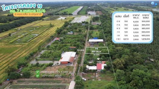 ขายที่ดินคลอง 10 กม.7 เนื้อที่เริ่มต้นแปลงละ 120 ตารางวา อ.หนองเสือ จ.ปทุมธานี