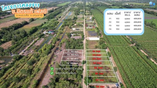 ที่ดิน ซ.มิตรแท้ คลอง 11เนื้อที่เริ่มต้นแปลงละ 102 ตารางวา