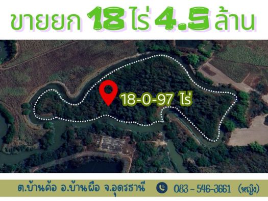ที่ดินผืนใหญ่ 18 ไร่ ติดน้ำรอบด้าน อ.บ้านผือ จ.อุดรธานี ราคาถูกเฉลี่ยหลักร้อยต่อตารางวา!