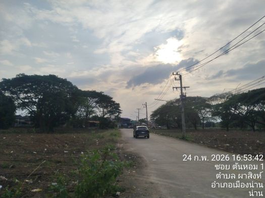 ถนน 12 เมตร หน้ากว้าง 100 กว่าเมตร เป็นที่ดินเขตเมืองน่าน ที่รอเจ้าของท่านใหม่
