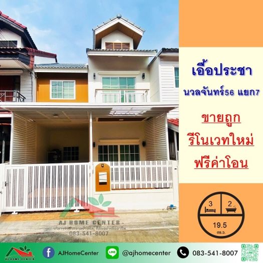 รีโนเวทใหม่ขายถูก ทาวน์โฮม19.5ตรว. ม.เอื้อประชา นวลจันทร์56 แยก7 พร้อมอยู่ ฟรีโอน