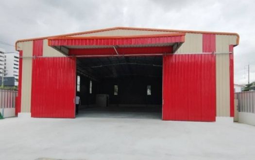 ประตูหน้าบานเลื่อนคู่กว้าง 6 เมตร สูง4.5 เมตร ไม่มีเสากลาง
