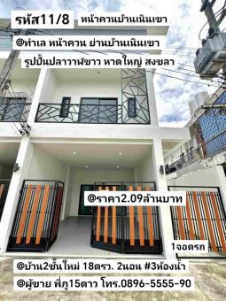 บ้าน2ชั้นใหม่ มี2หลัง หน้าควน ลานกีฬาบ้านเนินเขา ฝั่งรูปปั้นปลาวาฬขาว หาดใหญ่ สงขลา