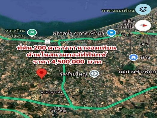 ขายที่ดิน สนามกอล์ฟฟีนิกซ์ บ้านอำเภอ นาจอมเทียน 200 ตร.ว วิวสนามก