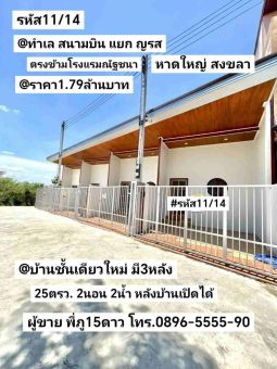 บ้านชั้นเดียวใหม่ มี3หลัง สนามบิน หาดใหญ่ สงขลา