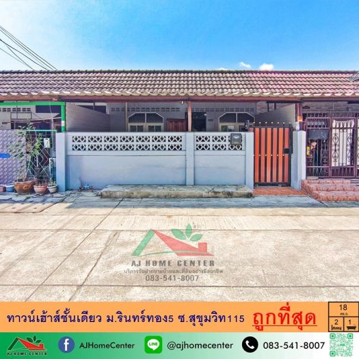ขายถูกมาก1.35ล้าน ทาวน์เฮ้าส์ชั้นเดียว18ตรว. ม.รินทร์ทอง5 สุขุมวิท115 ใกล้ BTSปู่เจ้า