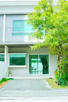 with private garden built in furniture rent 11,998 B-M near Assumption University Bangna 900m.Two story townhome 2 bed 3 bath modern design land size 18 sq.wa. usable area 145 sq.m. ideal for living in quiet atmosphere in Bangna near Bang Bo Market 1 km. and expressway with convenient transportation