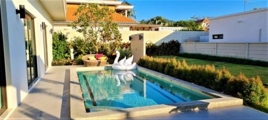 พูลวิลล่า หัวหิน ใกล้ทะเล เพดานสูงโปร่ง ลมดี 102 ตรว. 3 นอน วิวสระทุกห้อง